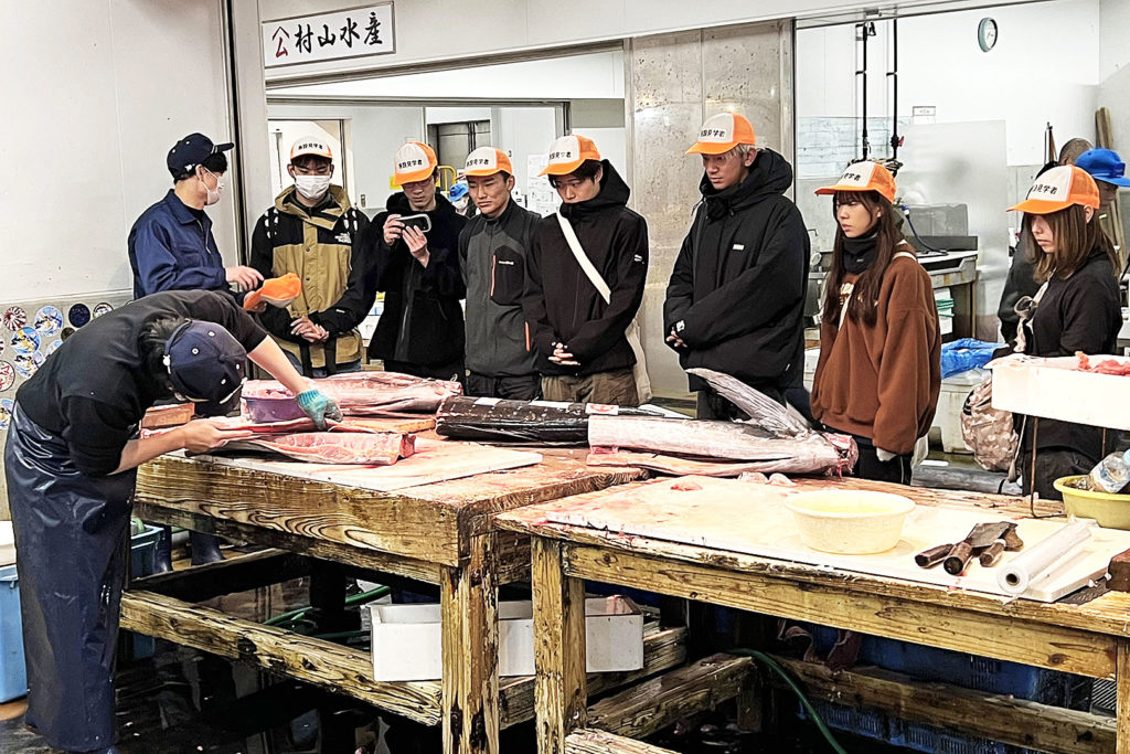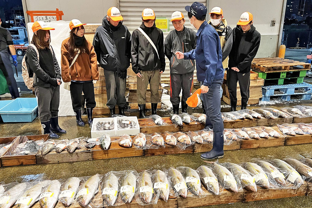 今日は鹿児島大学水産学部2年生の学生さんたちが見学にいらっしゃいました。授業の一環だそうです。朝の早い時間でしたが、みなさん熱心に見学されていました。